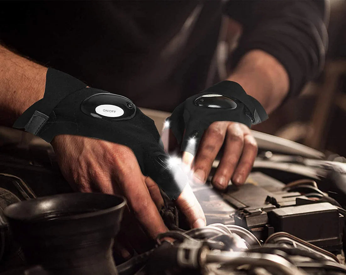 Trabaja, pesca o repara con total libertad, incluso en la oscuridad. Este guante LED sin dedos lleva la luz justo donde la necesitas: en tus dedos.